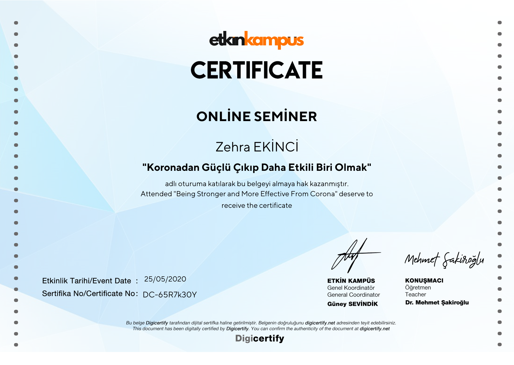 Sertifikaları görüntüleme adresiniz: https://digicertify.net//my/65R7k30Y