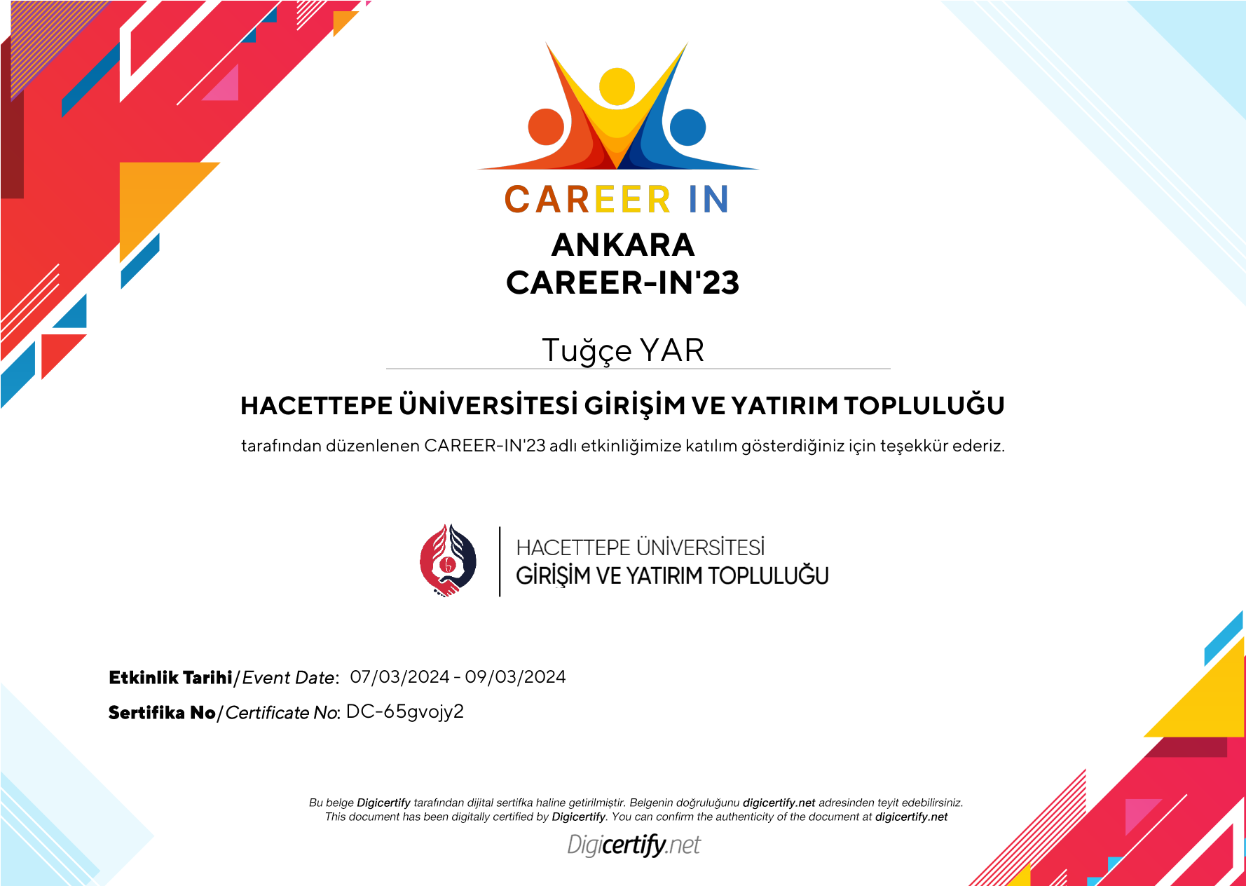 Sertifikaya ait görüntüleme adresi: