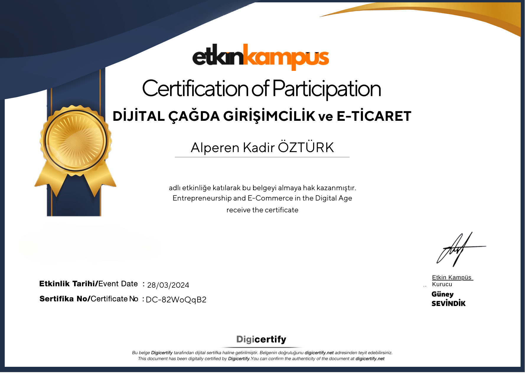 Sertifikaya ait görüntüleme adresi: