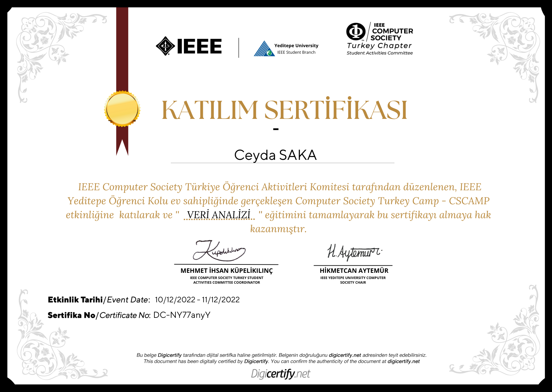 Sertifikaya ait görüntüleme adresi: