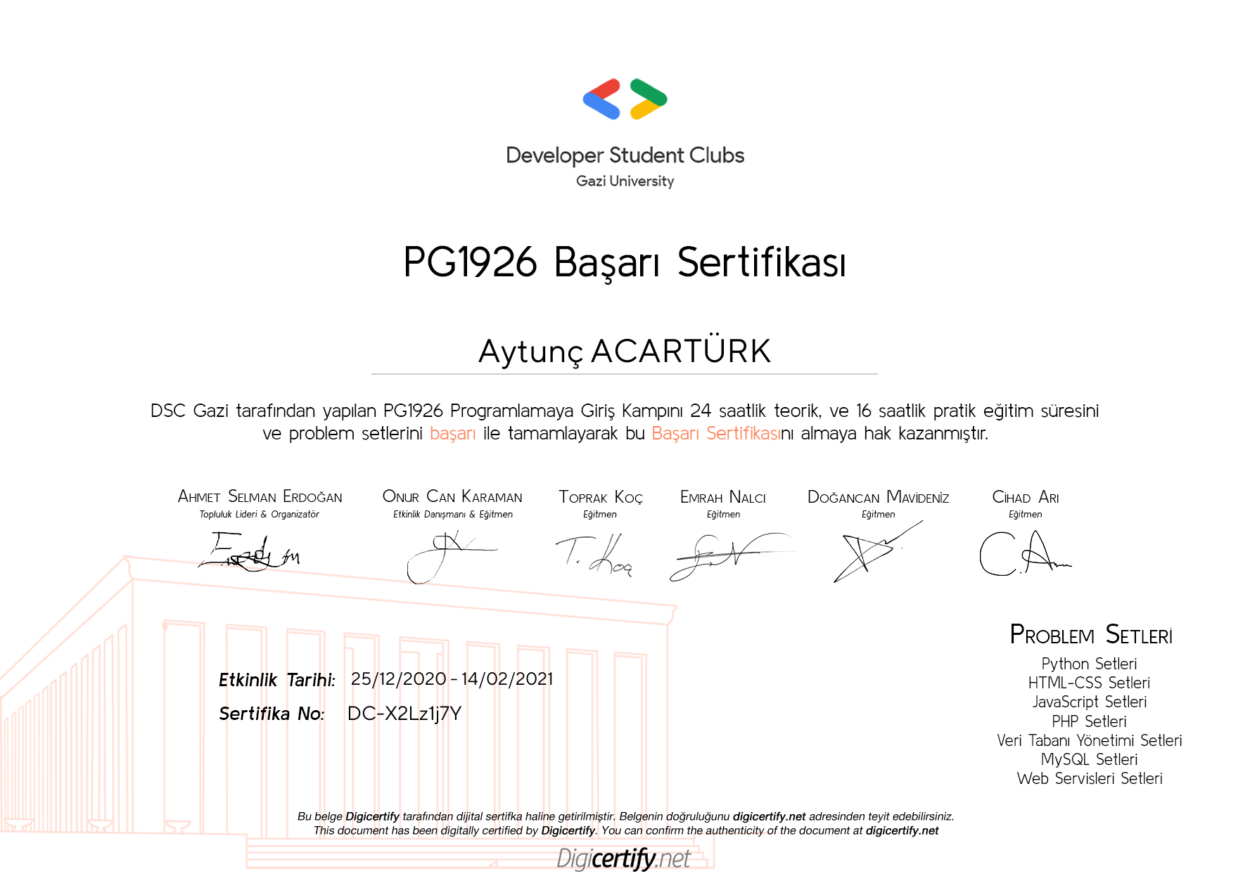 Sertifikaya ait görüntüleme adresi: