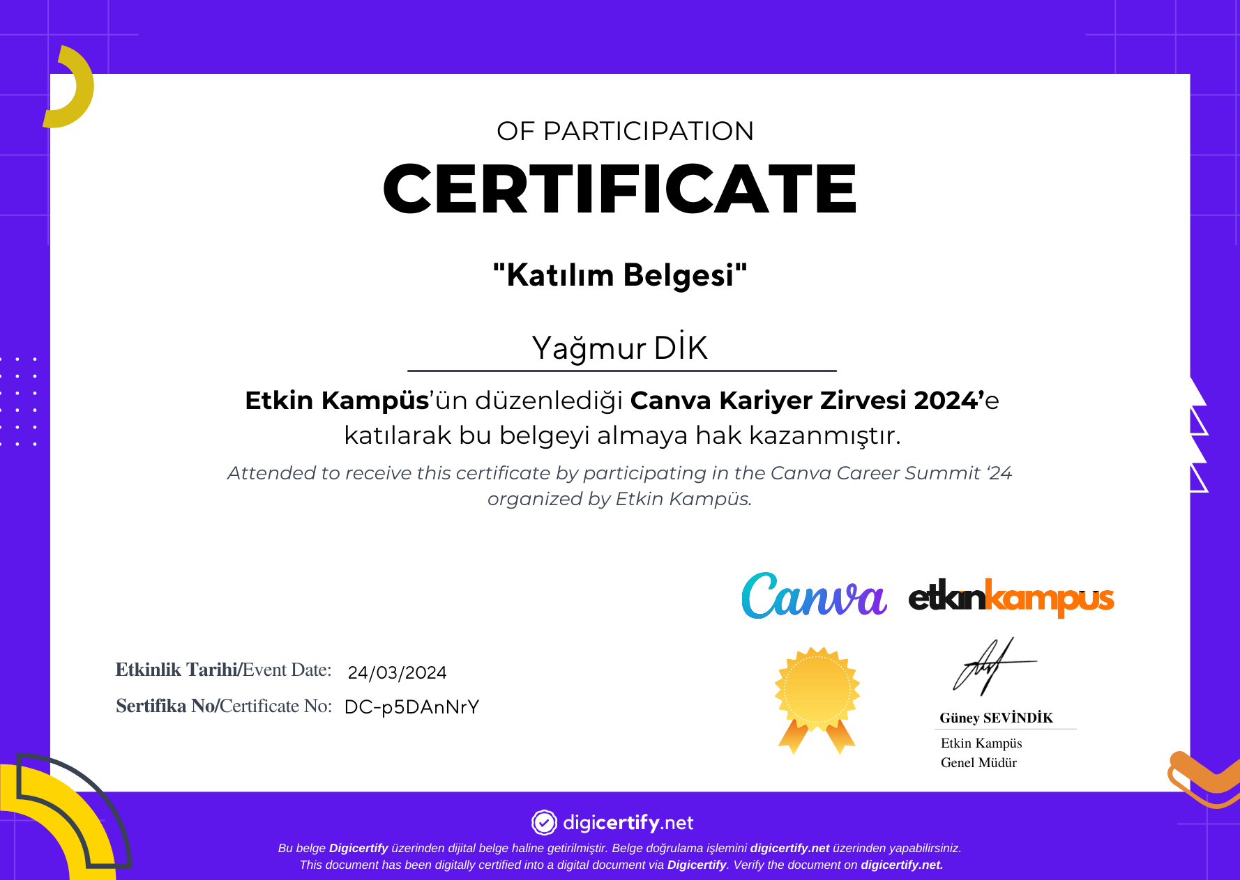 Sertifikaları görüntüleme adresiniz: https://digicertify.net//my/p5DAnNrY