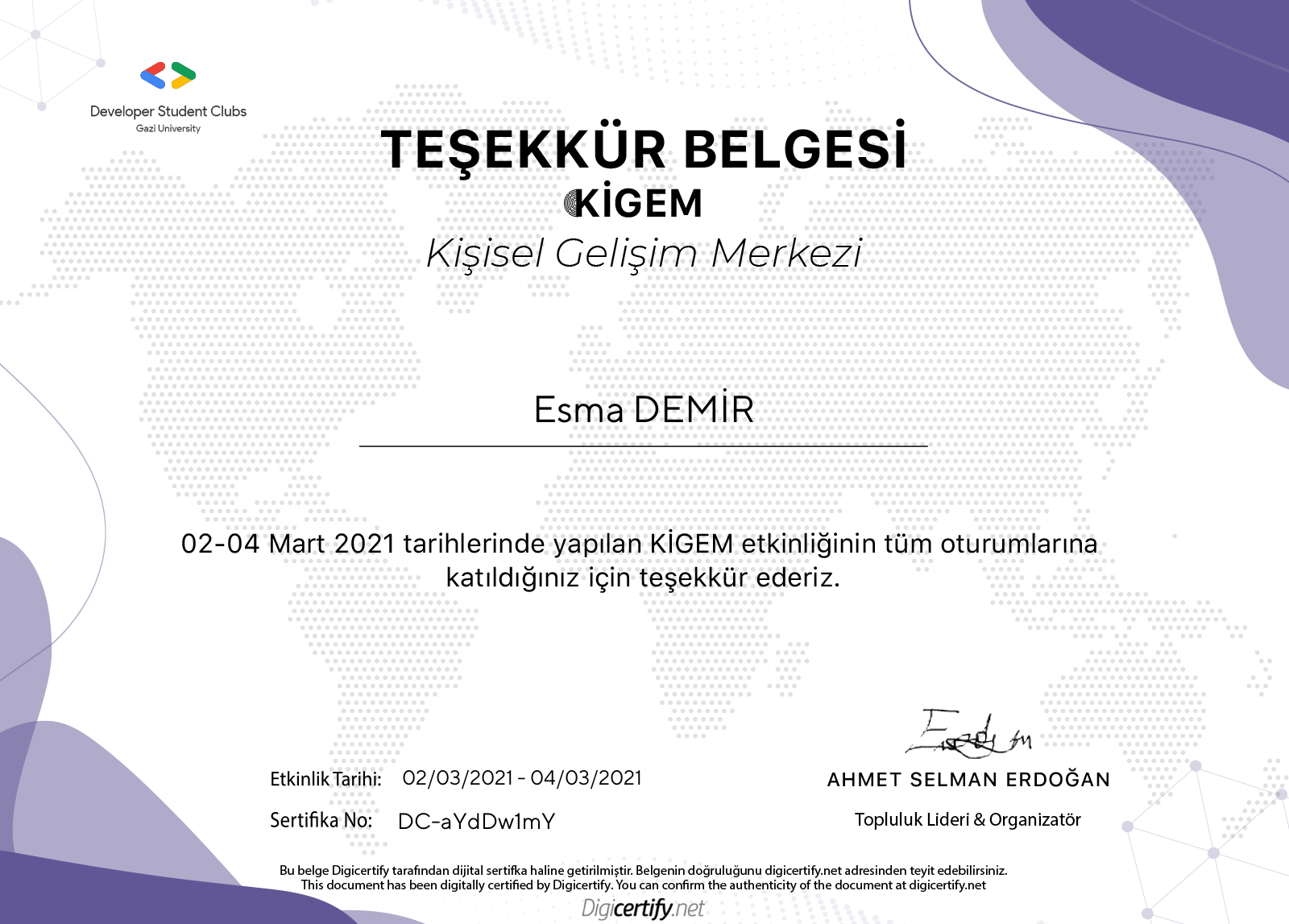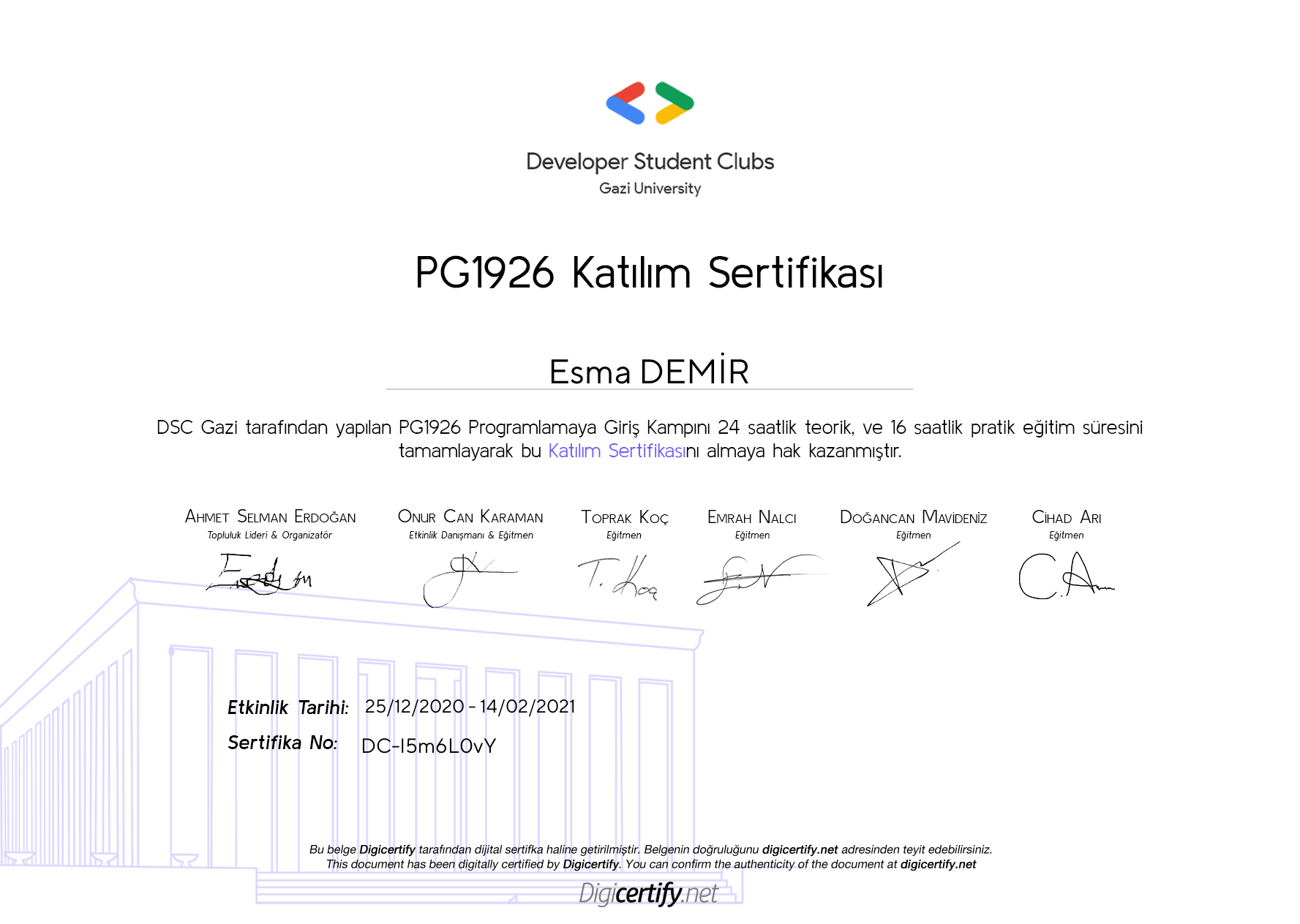 Sertifikaları görüntüleme adresiniz: https://digicertify.net//my/MYANpyB4