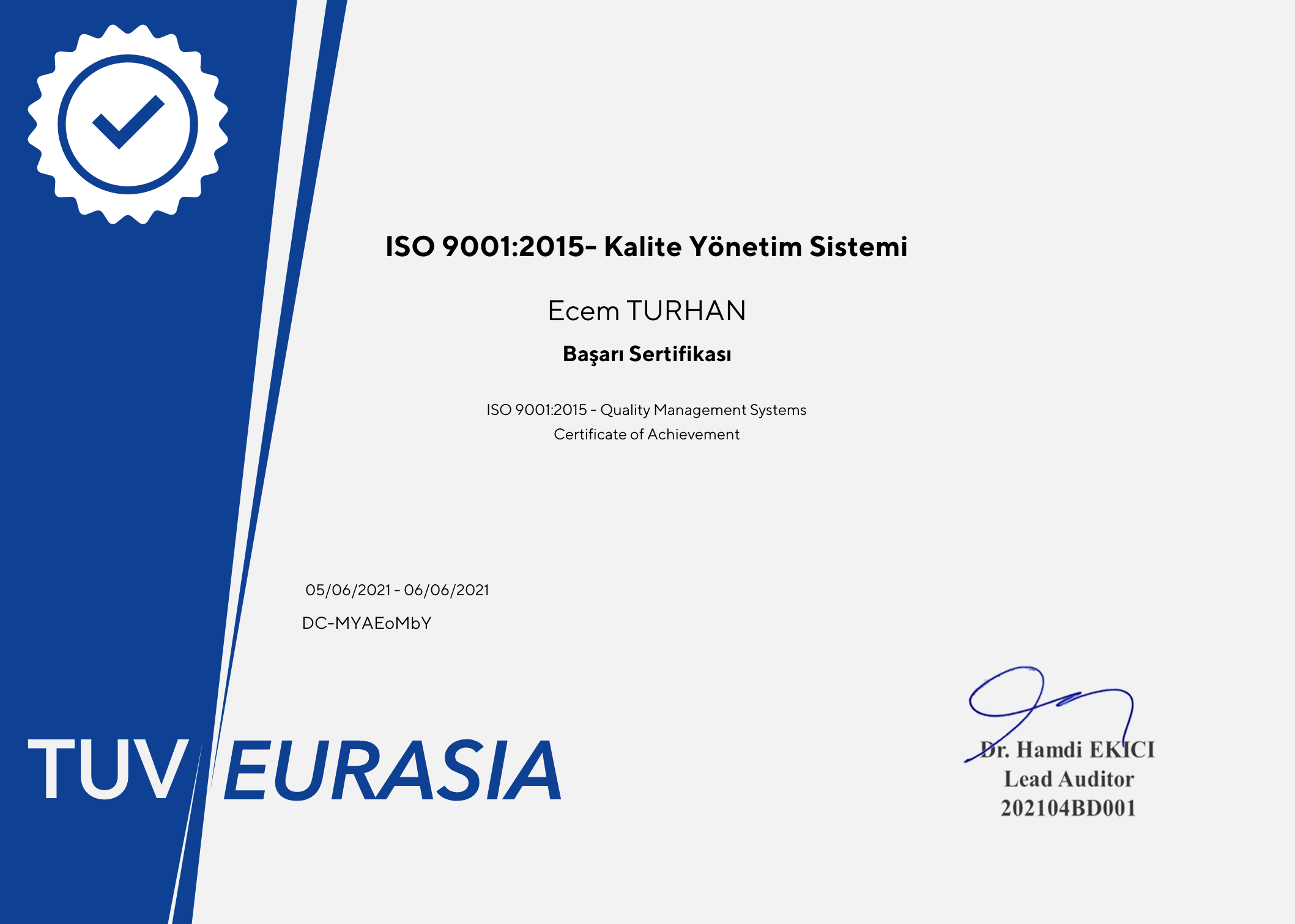 1. ISO 9001:2015- Kalite Yönetim Sistemi