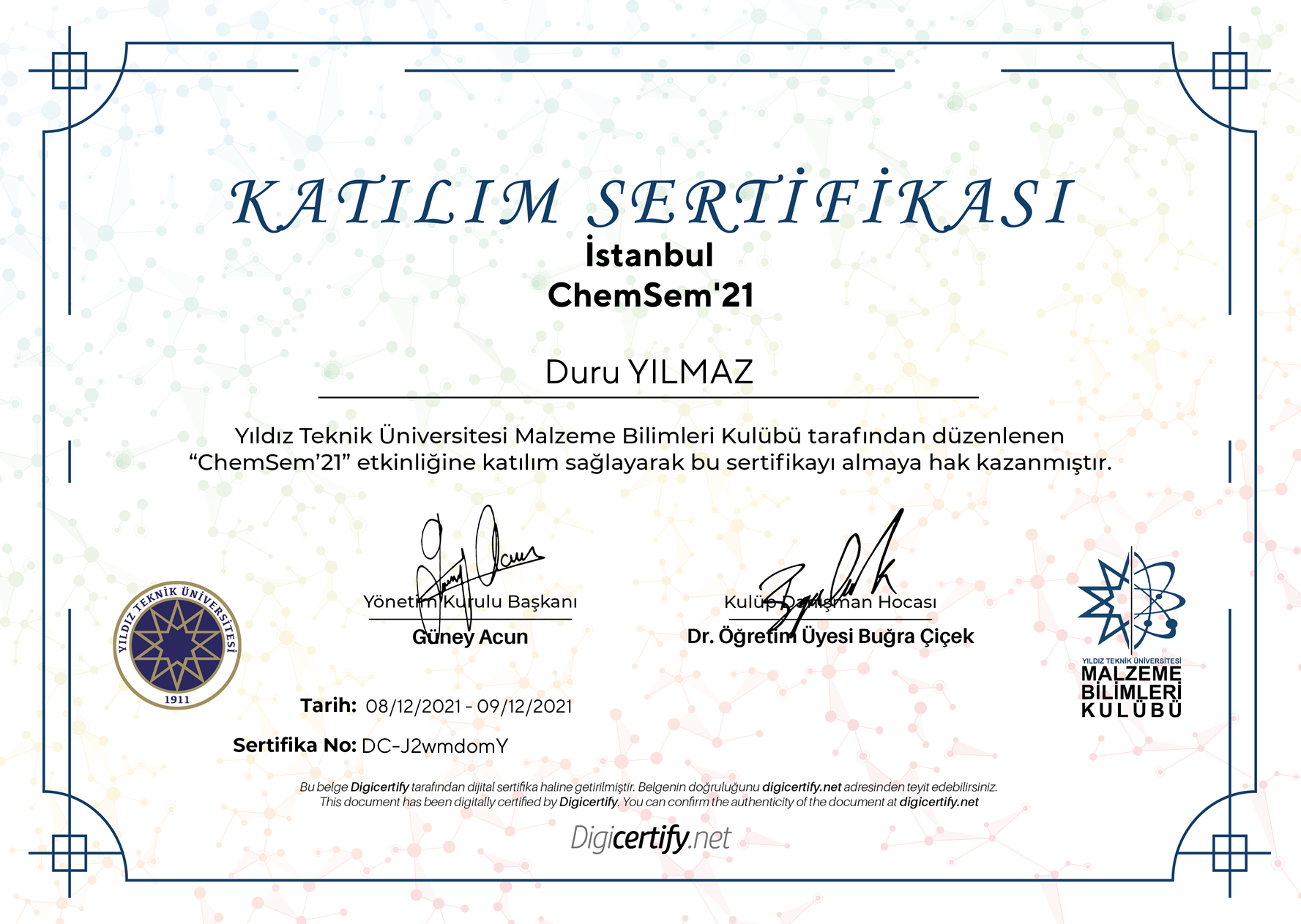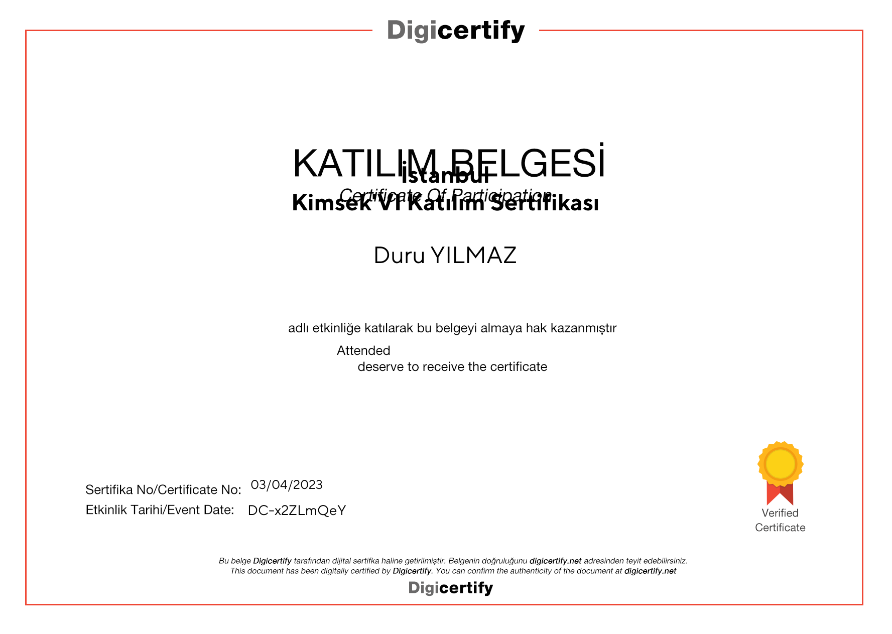 1. KİMSEK'VI KATILIM SERTİFİKASI