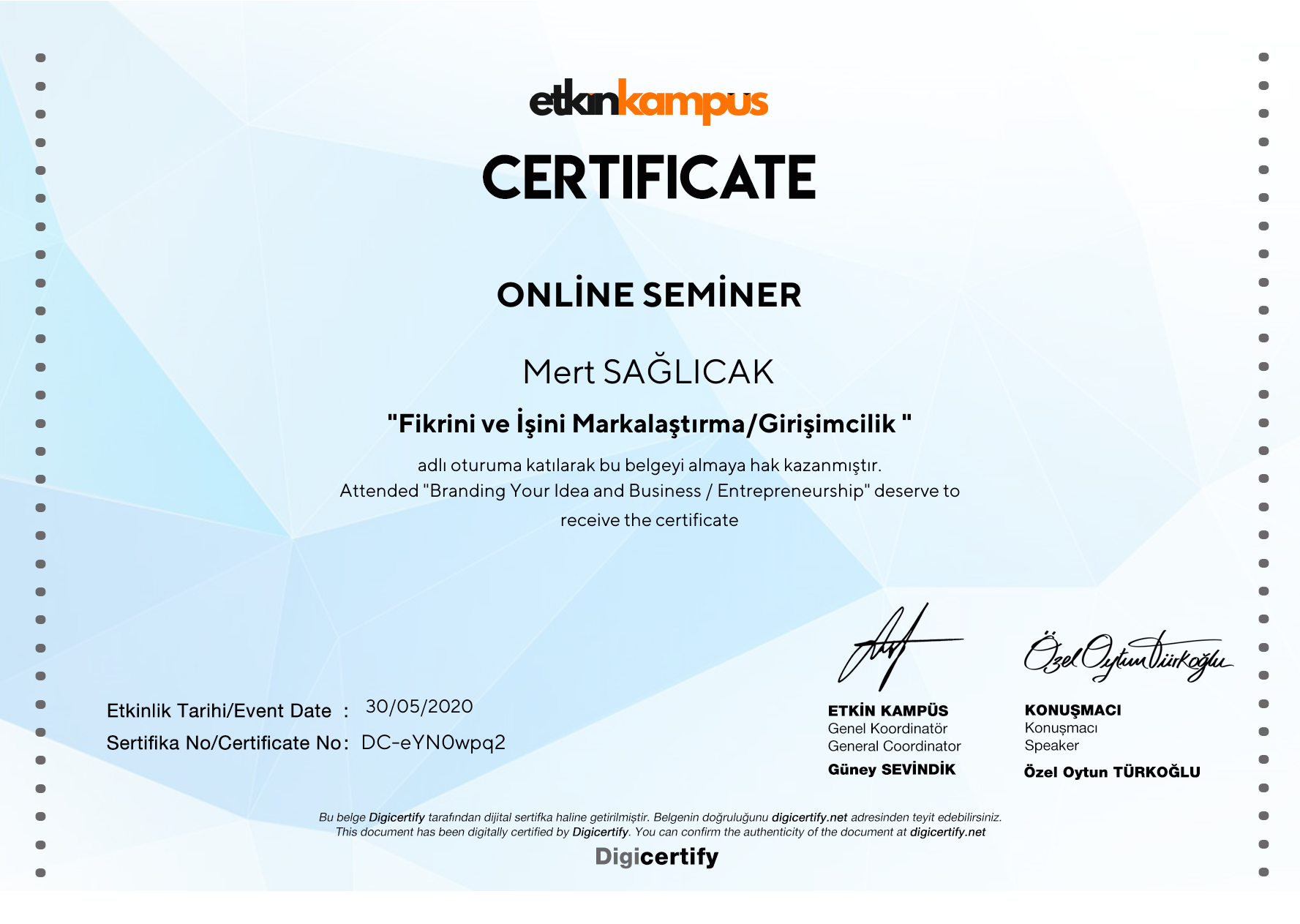 Sertifikaları görüntüleme adresiniz: https://digicertify.net//my/eYN0wpq2